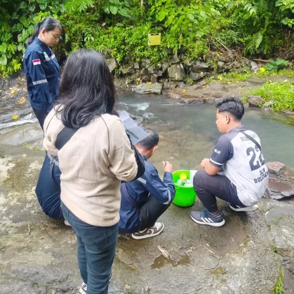 Dilaksanakan pengujian parameter lapangan yaitu parameter pH, Suhu, TDS, DO, dan debit air sungai, serta untuk parameter lain akan diuji di laboratorium LH. Hasil uji dibandingkan baku mutu sesuai Peraturan Pemerintah Republik Indonesia No 22 tahun 2021 tentang Penyelenggaraan Perlindungan dan Pengelolaan Lingkungan Hidup Lampiran VI tabel 1 Kelas II.