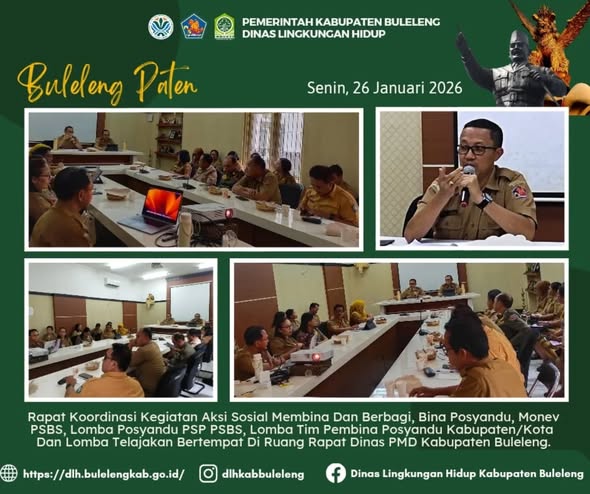 Menindaklanjuti hasil rapat koordinasi Tim Pembina Posyandu Provinsi Bali, Dinas PMD Kabupaten Buleleng mengundang Kepala Dinas Lingkungan Hidup Kabupaten Buleleng I Gede Putra Aryana rapat koordinasi Aksi Sosial Membina dan Berbagi, Bina Posyandu, Monev PSBS, Lomba Posyandu PSP PSBS, Lomba Tim Pembina Posyandu Kabupaten/Kota Dan Lomba Telajakan bertempat Di Ruang Rapat Dinas PMD Kabupaten Buleleng Senin, 26 Januari 2026