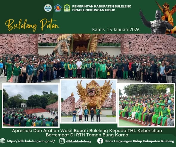 Buleleng, Kamis (15/1/2026) – Wakil Bupati Buleleng memberikan apresiasi sekaligus arahan kepada seluruh pegawai Dinas Lingkungan Hidup Kabupaten Buleleng dalam rangka