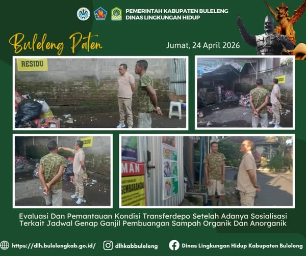 Dalam rangka memastikan efektivitas pelaksanaan kebijakan pengelolaan persampahan pasca dilaksanakannya sosialisasi jadwal genap–ganjil pembuangan sampah organik dan anorganik, Kepala Dinas Lingkungan Hidup Kabupaten Buleleng, I Gede Putra Aryana, melaksanakan kegiatan evaluasi dan pemantauan langsung terhadap kondisi operasional transfer depo.
