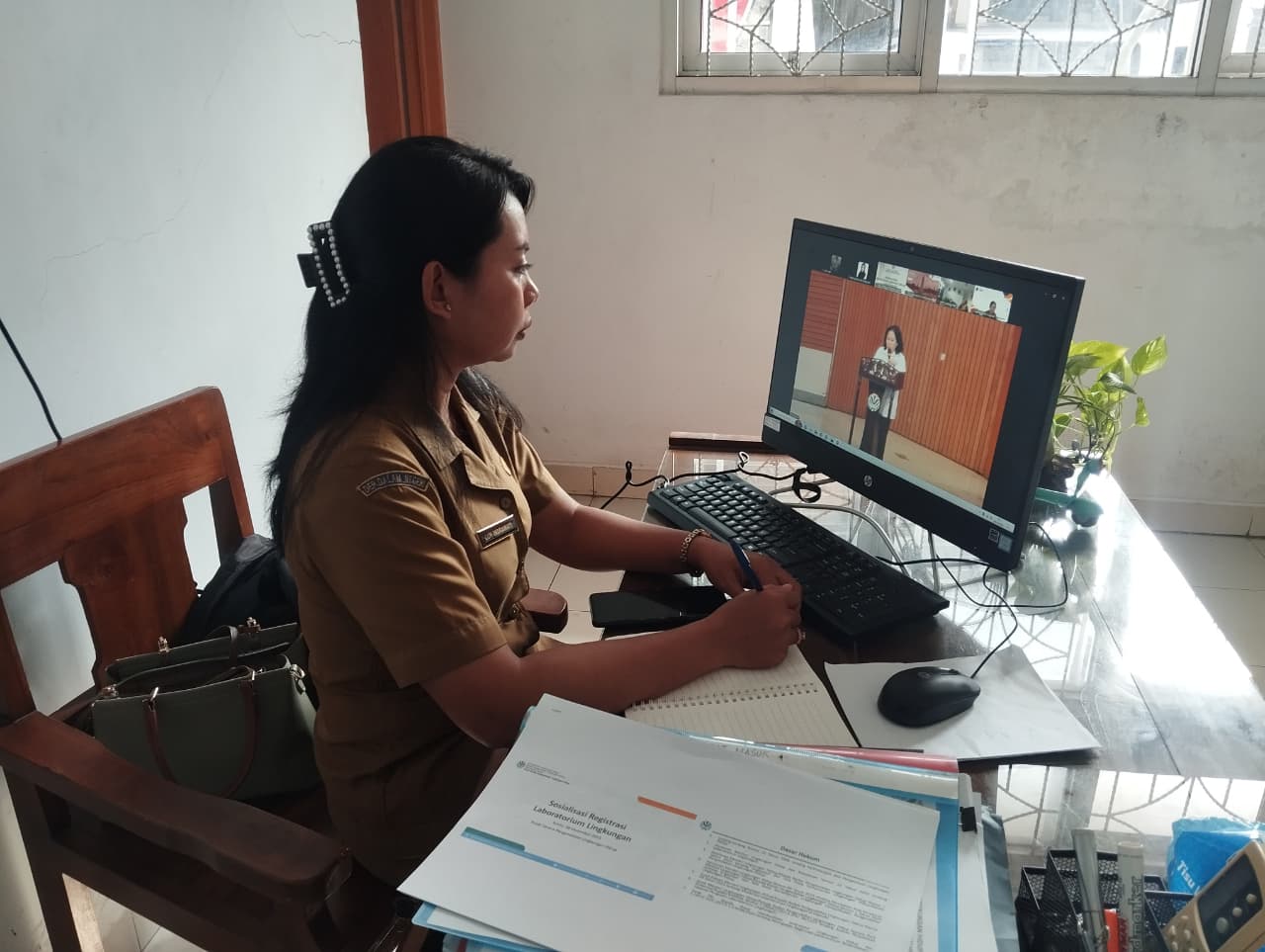 Kepala UPTD Laboratorium Lingkungan Hidup beserta staf mengikuti Sosialisasi Registrasi Laboratorium Lingkungan Hidup secara daring yang dilaksanakan pada Senin, 8 Desember 2025. Rapat dibuka oleh Kepala Pusat Sarana Pengendalian Lingkungan Hidup Ir. Sinta Saptarina Soemiarno, M.Sc. dan dihadiri oleh Dinas Lingkungan Hidup Provinsi/Kabupaten Kota, UPTD Laboratorium Lingkungan DLH Provinsi/Kabupaten Kota dan Laboratorium Pengujian terakreditasi KAN, Direktur Badan Standarisasi Nasional beserta jajaran. Selanjutnya dilaksanakan penyampaian materi sosialisasi. Tujuan dilaksanakan Registrasi Laboratorium Lingkungan yaitu mendukung pengelolaan lingkungan hidup, khususnya pada pemantauan dan pengujian parameter kualitas lingkungan hidup., memastikan laboratorium lingkungan kompeten dan menghasilkan data kualitas lingkungan yang valid, representatif, serta dapat dipertanggungjawabkan secara ilmiah maupun hukum, dan data kualitas lingkungan yang dihasilkan berguna untuk menentukan kebijakan lingkungan hidup dan alat bukti dalam penegakan hukum.
