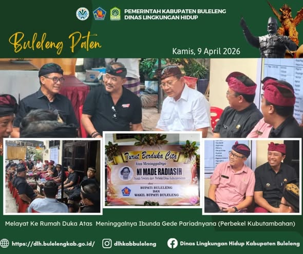 Mewujudkan rasa kekeluargaan, Kepala Dinas Lingkungan Hidup Kabupaten Buleleng mengikuti rombongan Bupati Buleleng, Wakil Bupati Buleleng, Sekretaris Daerah Kabupaten Buleleng beserta beberapa pimpinan OPD Kabupaten Buleleng melayat ke rumah duka atas meninggalnya ibunda Gede Pariadnyana (Perbekel Kubutambahan) dan semoga keluarga yang ditinggalkan diberikan ketabahan.