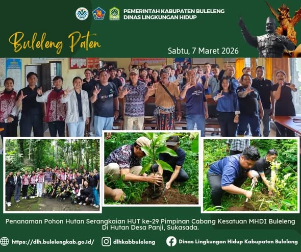 Dalam rangka pelestarian lingkungan, Kepala Dinas Lingkungan Hidup Kabupaten Buleleng I Gede Putra Aryana mengikuti kegiatan penanaman pohon serangkaian HUT ke-29 Pimpinan Cabang Kesatuan Mahasiswa Hindu Dharma Indonesia (KMHDI) Buleleng berlokasi di Hutan Desa Panji, Sukasada.