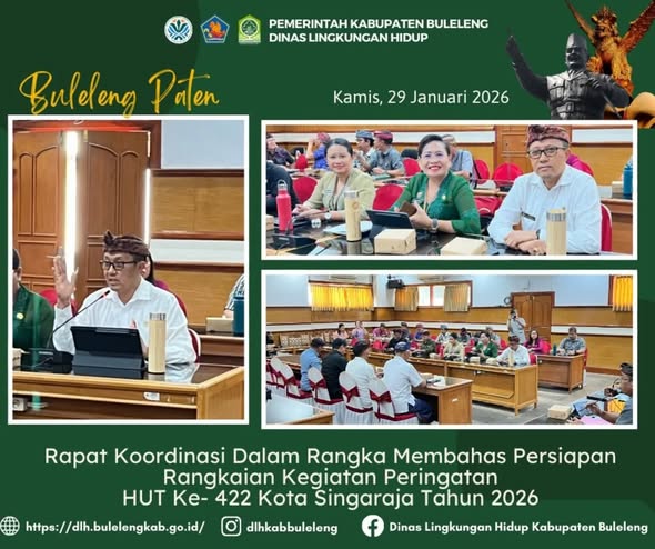 Melalui koordinasi yang terencana dan kolaboratif antar perangkat daerah, rangkaian kegiatan peringatan HUT ke-422 Kota Singaraja Tahun 2026 diharapkan dapat berjalan lancar serta memberikan dampak positif bagi masyarakat, khususnya dalam mendorong budaya peduli lingkungan dan pembangunan kota yang berkelanjutan.